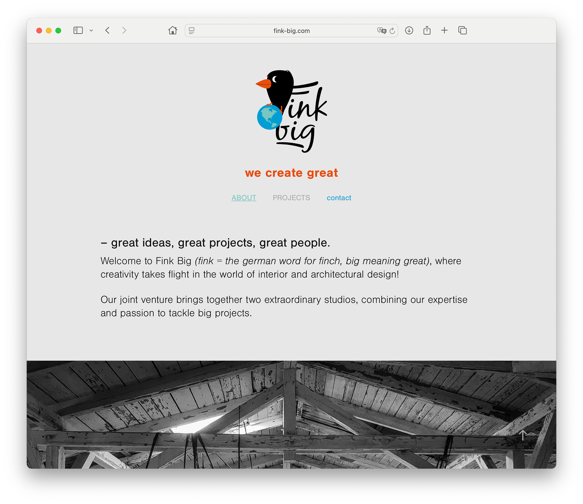 Der Name spielt augenzwinkernd mit »Think Big« und dem kleinen Fink, der im Logo die Welt erobert – ein Sinnbild für kreative Energie, die Großes bewegt. Leuchtende Farben, klare Formen und der Claim »we create great« unterstreichen den mutigen, positiven Auftritt. Fink Big steht für hohen gestalterischen Anspruch, persönliche Beziehungen und ein Mindset, das Projekte groß, anders und unverwechselbar macht.